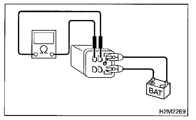4. Measure resistance between main relay terminals.