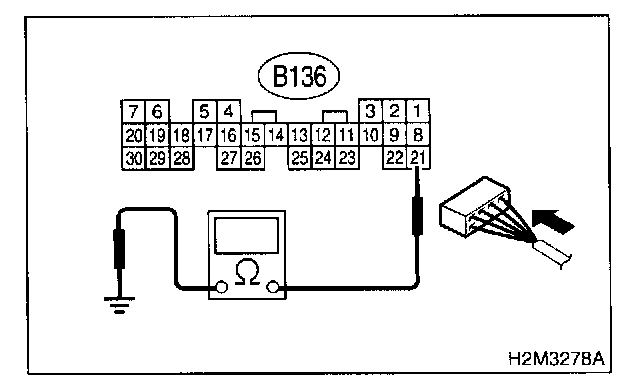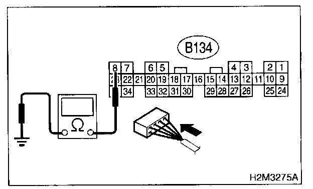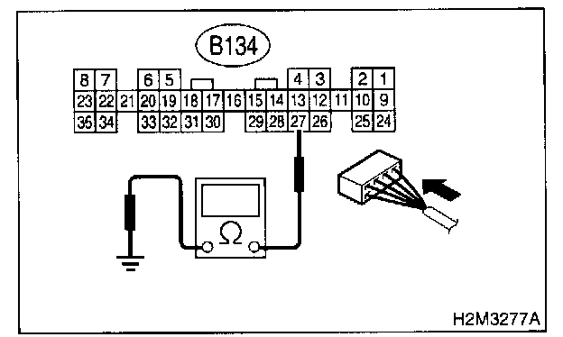 2. Measure resistance between main relay connector and chassis ground.