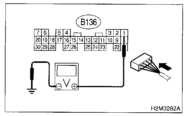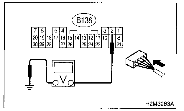 2. Measure voltage between ECM connector and chassis ground.