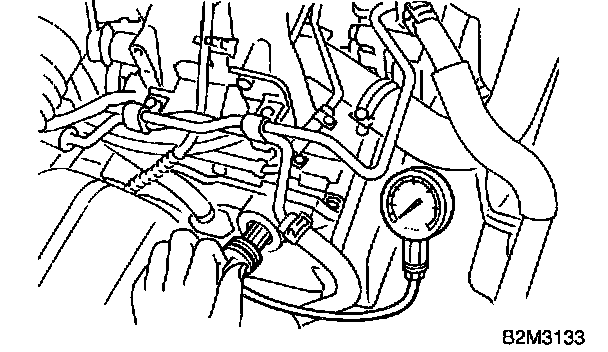8) Crank the engine by means of the starter motor, and read the maximum value on the gauge when the pointer is steady.