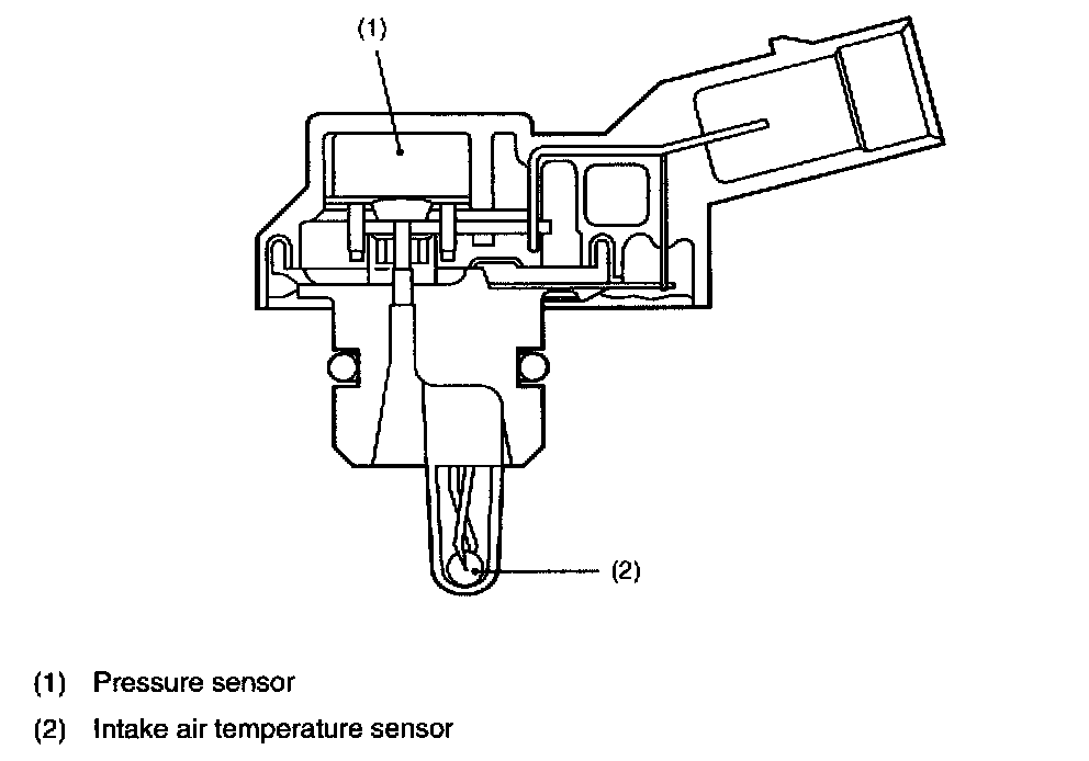 The pressure sensor is of the type that is made integral with an intake air temperature sensor and is mounted on the intake manifold to measure the absolute air pressure in the intake manifold as well as it's temperature.