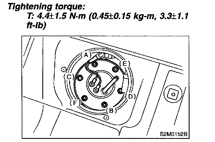 6. Remove bolts which install fuel sub level sensor on fuel tank.