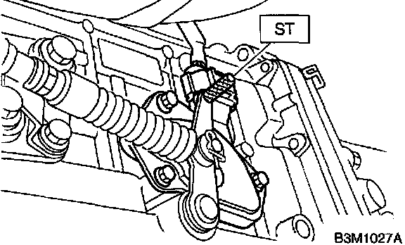 3. Insert ST as vertical as possible into the holes in the inhibitor switch lever and switch body.