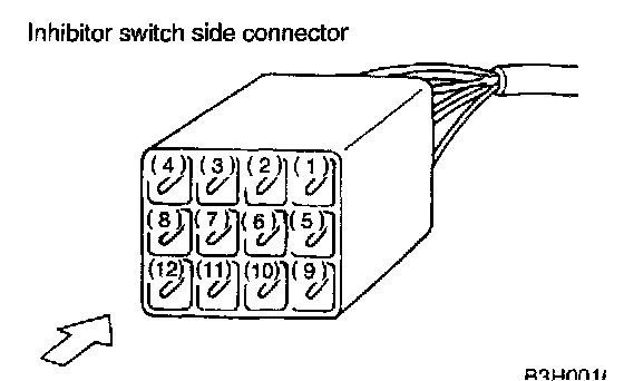 NOTE: If inhibitor switch is inoperative, check for poor contact of connector on transmission side.