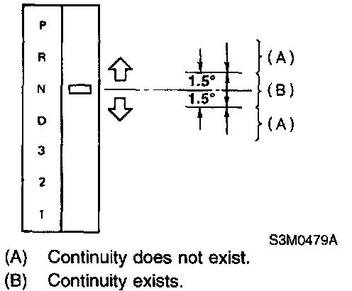 3. Check if there is continuity at equal points when the select lever is turned 1.5° in both directions from the N range.