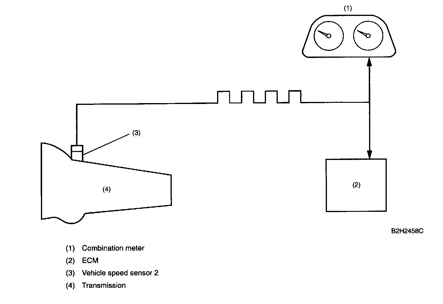- The vehicle speed sensor 2 generates a 4-pulse signal for every rotation of the front differential and send it to the ECM and the combination meter.