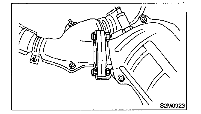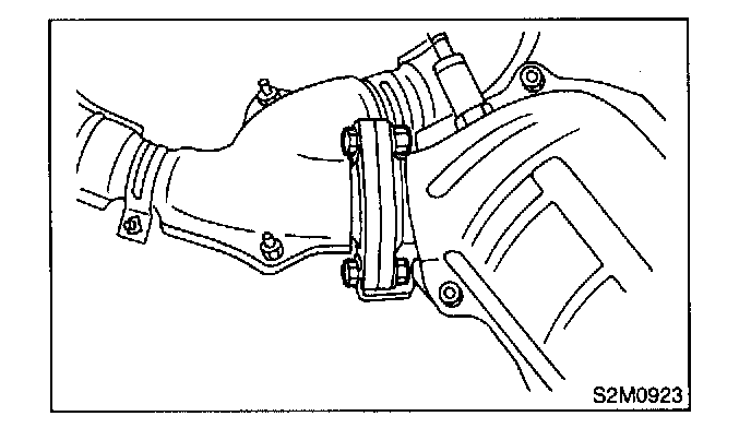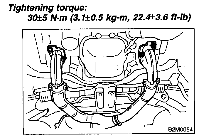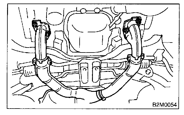 - After removing center exhaust pipe, do not apply excessive pulling force on rear exhaust pipe.
