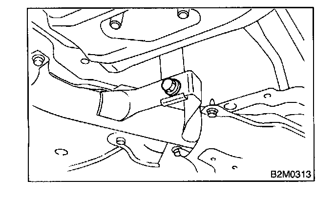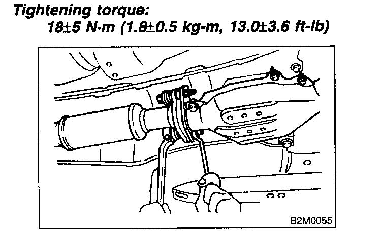 Temporarily tighten bolt which installs center exhaust pipe to hanger bracket.