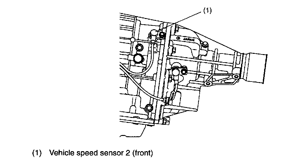 The vehicle speed sensor 2 (output shaft rotation sensor) is mounted to the transmission case (from the outside of the case). It detects the front wheel speed and sends sine wave signals (16 pulses per rotation) to TCM.
