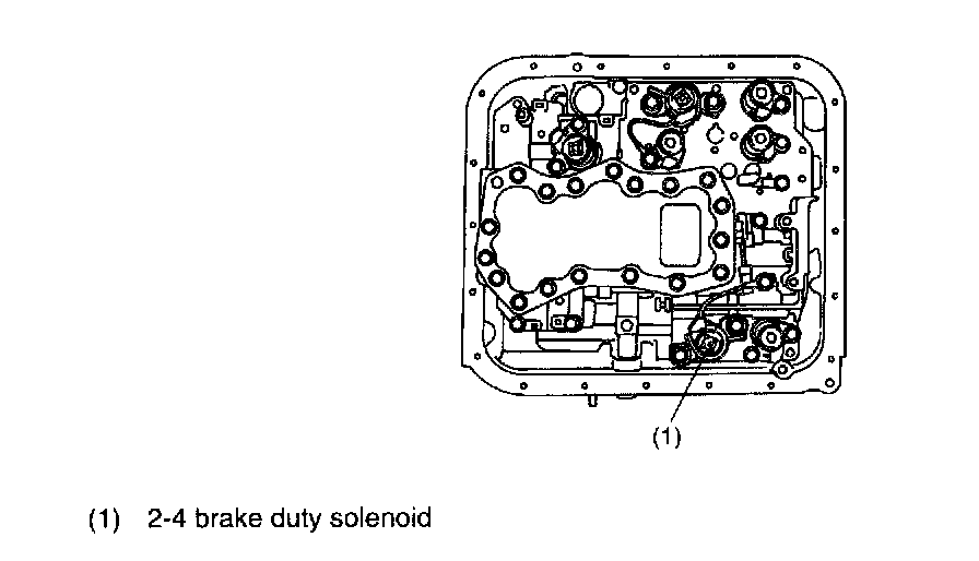 This solenoid is mounted to the control valve, and its duty ratio is controlled by the signal sent from TCM. It modulates the 2-4 brake duty pressure when the 2-4 brake is operated, reducing shifting shocks.
