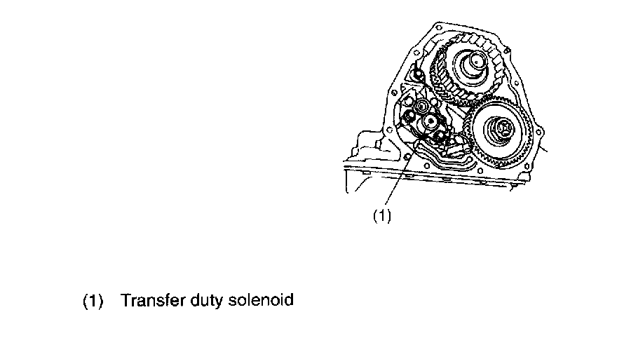 This solenoid is mounted to the transfer control valve on the rear end of transmission case, and its duty ratio is controlled by the signal sent from TCM. It then controls the transfer control valve for controlling the transfer clutch hydraulic oil pressure.