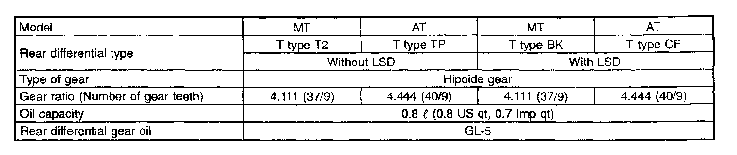 Rear Differential Service Data: