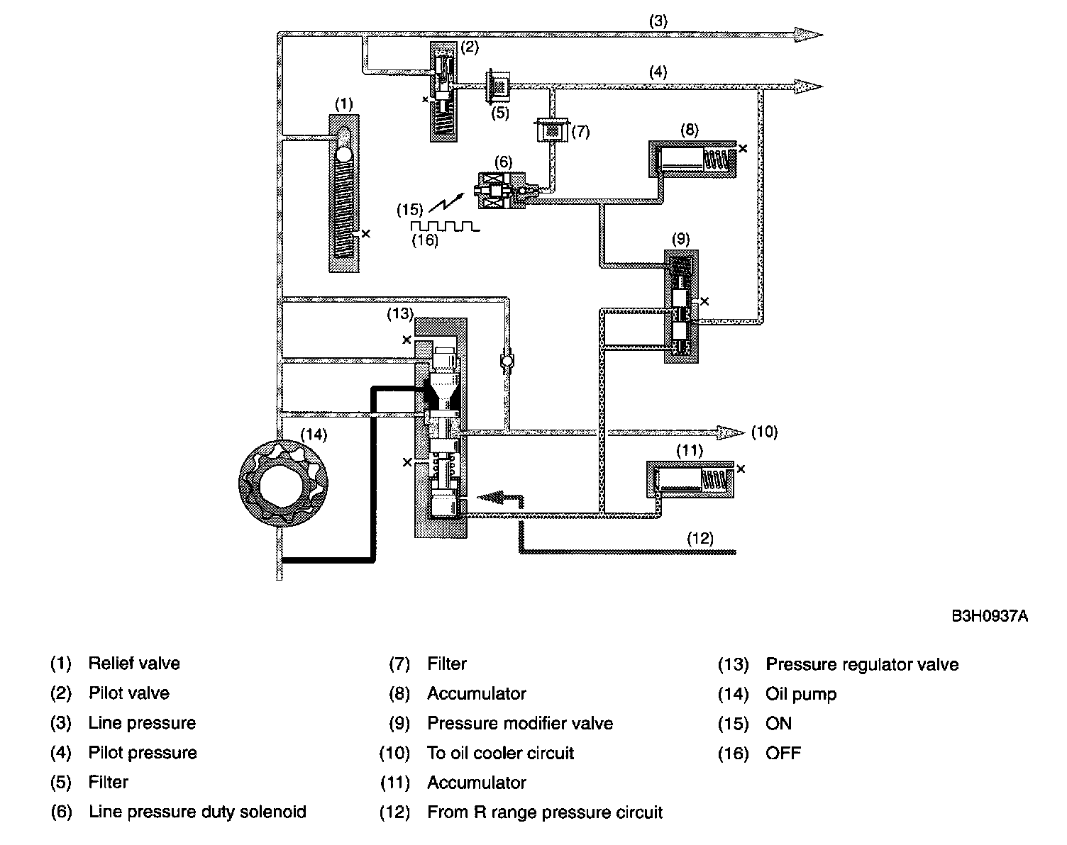 ^ The oil pump delivery pressure (line pressure) is regulated to the constant pilot pressure by the Pilot valve.