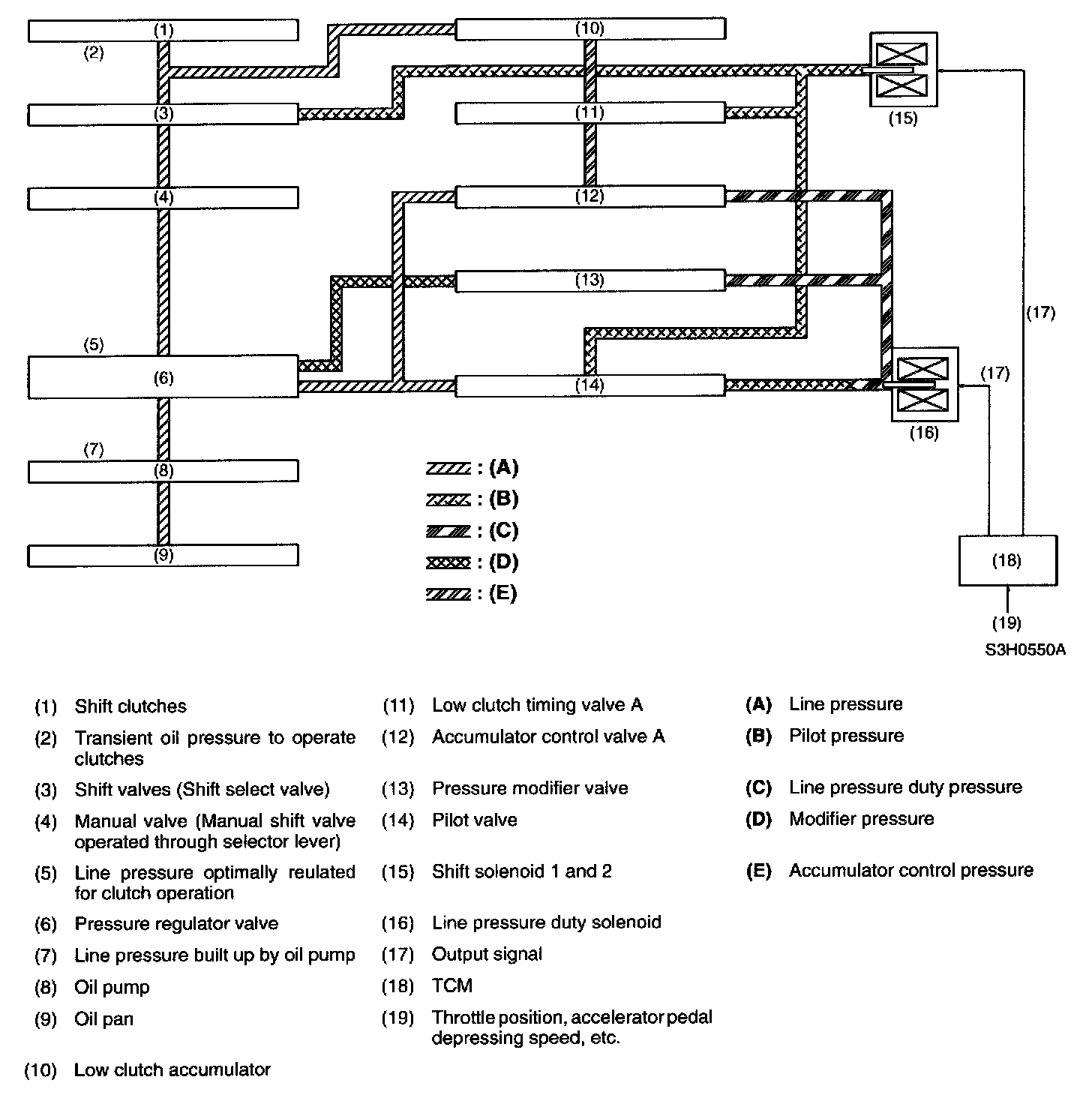 ^ The pilot pressure applied to the pressure modifier valve is regulated by the line pressure controlling line pressure duty solenoid and changed into the pressure modifier pressure.