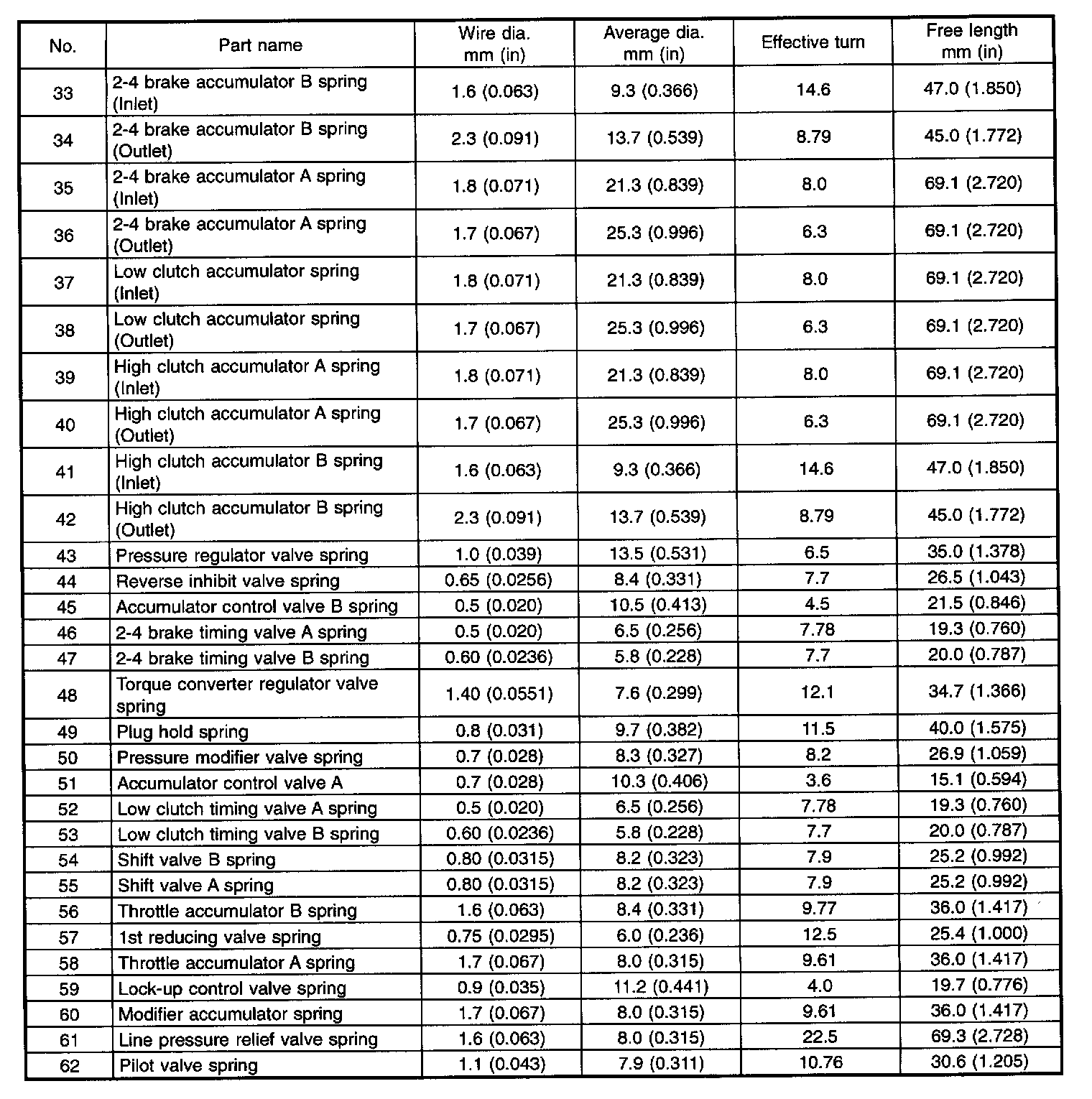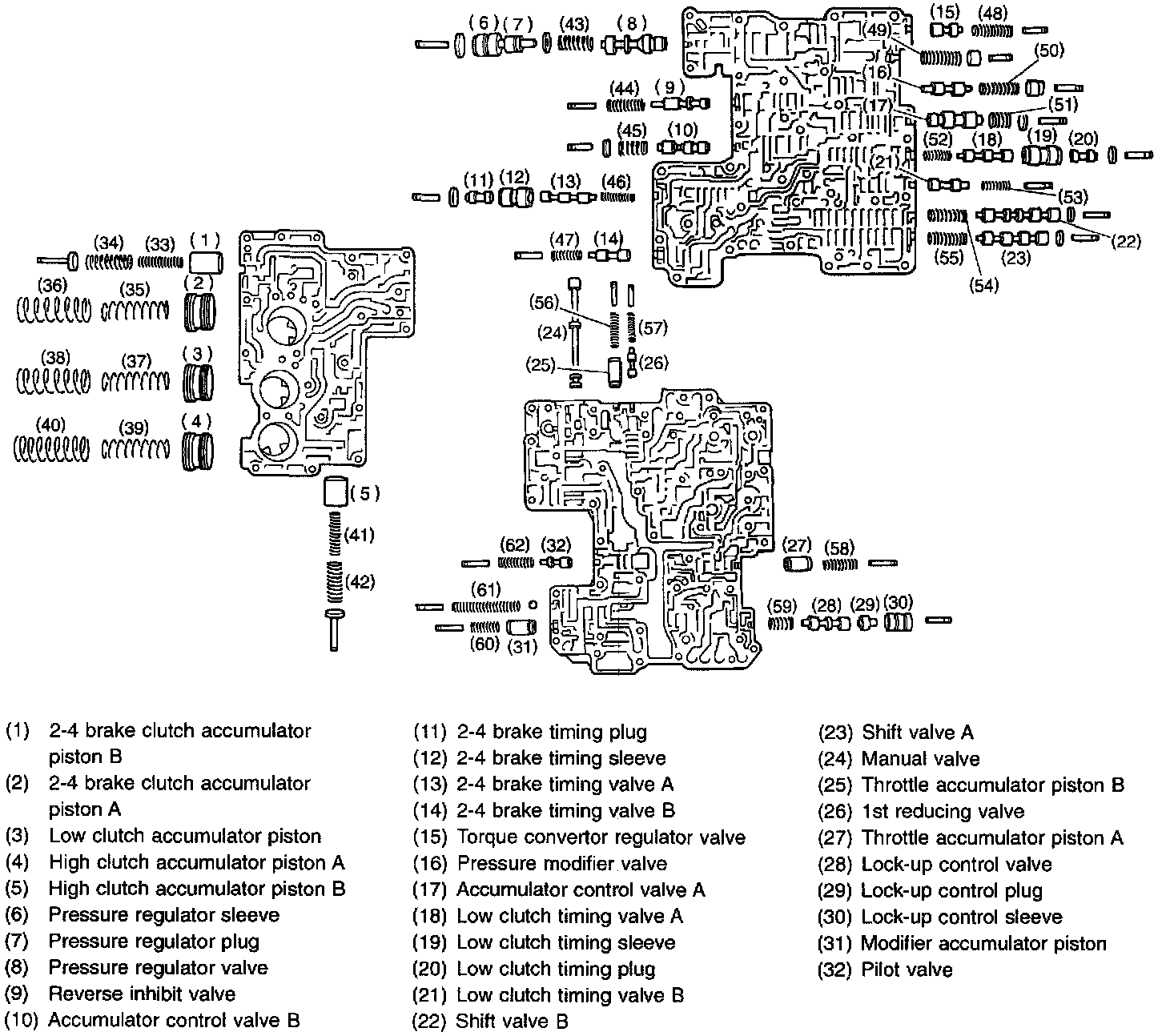 The control valve is composed of parts which are accurately machined to a high degree and should be handled carefully during disassembly and assembly. As these parts are similar in shape, they should be arranged in neat order on a table after disassembly so that they can be easily installed to their original positions. Spring loaded parts should be also handled carefully, as springs may jump out of place when the parts are disassembled or removed. Extreme care should be taken so as not to drop valves on the floor. Before assembling, the parts and valves should be dipped in a container filled with the ATF. Make sure that the valves are clean and free from any foreign material before assembly. Torque specifications should also be observed.