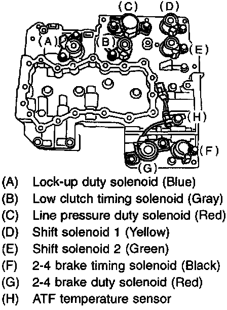 2. Remove the duty solenoids, solenoids and sensor from the lower valve body.