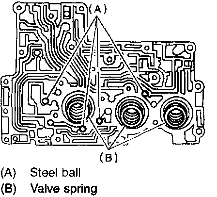 1. Install accumulator pistons, valve springs and steel balls to upper valve body.