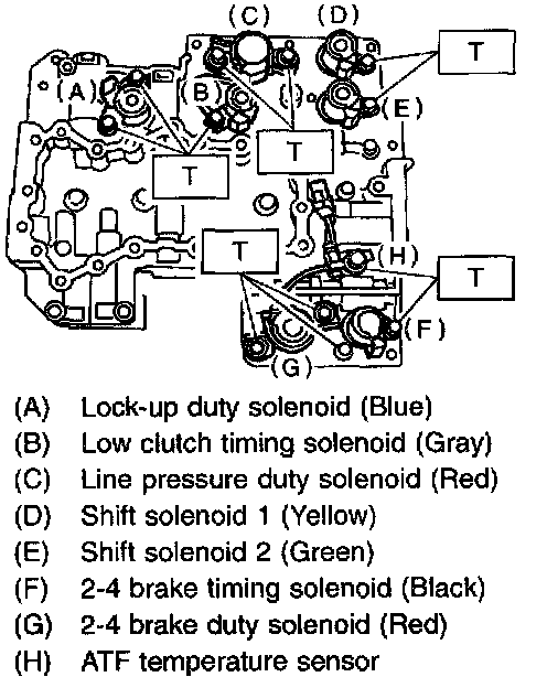 8. Install the sensor, solenoids and duty solenoids.