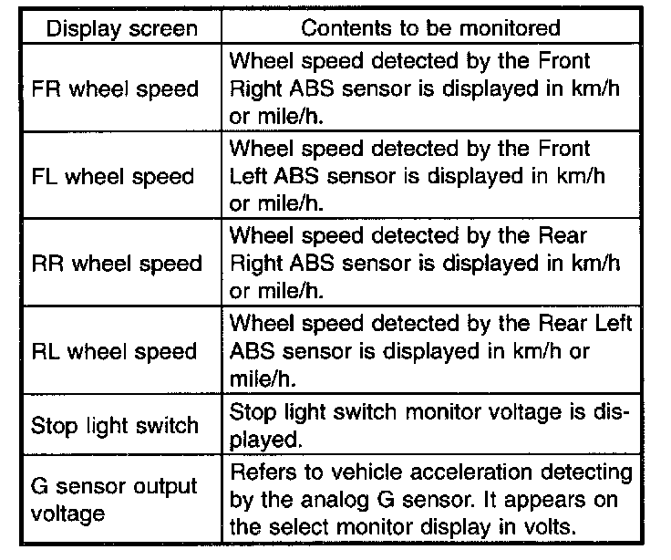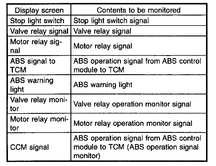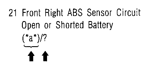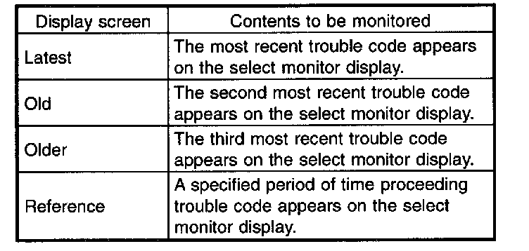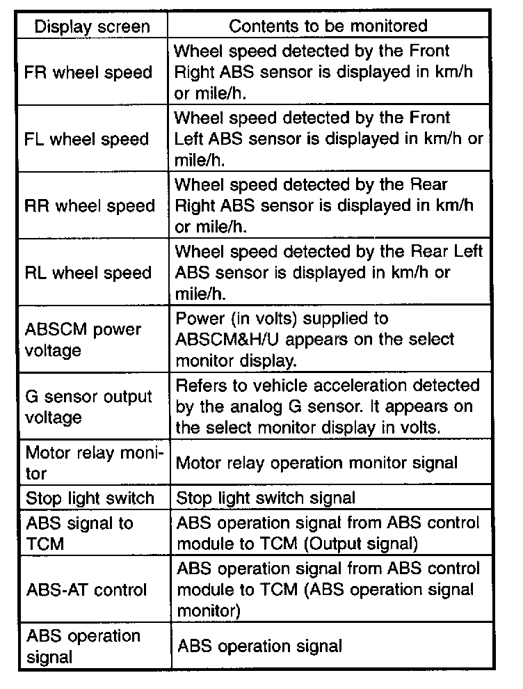 - If a particular trouble code is not properly stored in memory (due to a drop in ABSCM & H/U power supply, etc.) when a problem occurs, the trouble code, followed by a question mark "?", appears on the select monitor display. This shows it may be an unreliable reading.