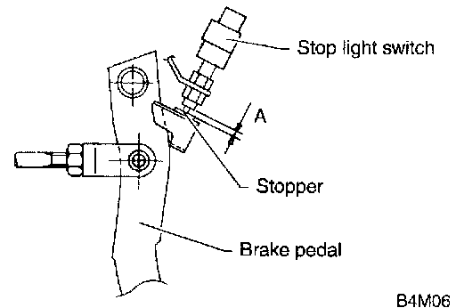 8. Measure the clearance between threaded end of stop light switch and stopper. If it is not in specified value, adjust it by adjusting position of stop light switch.