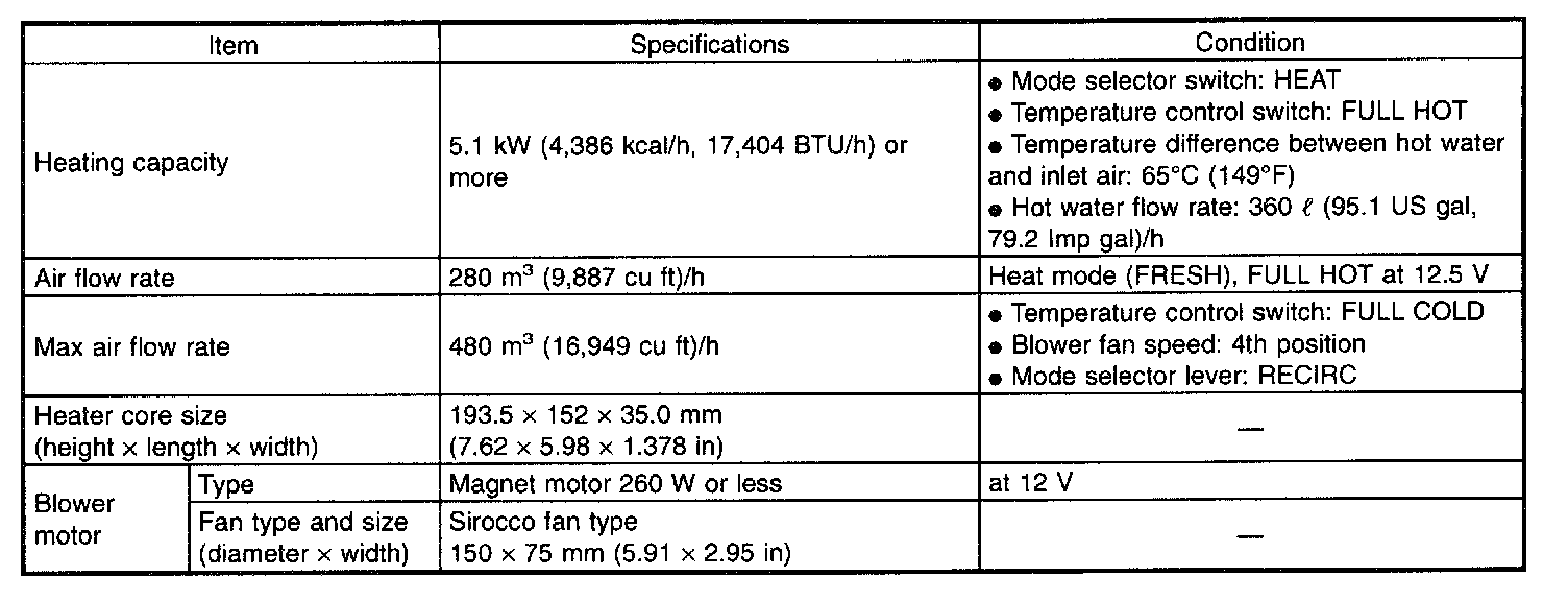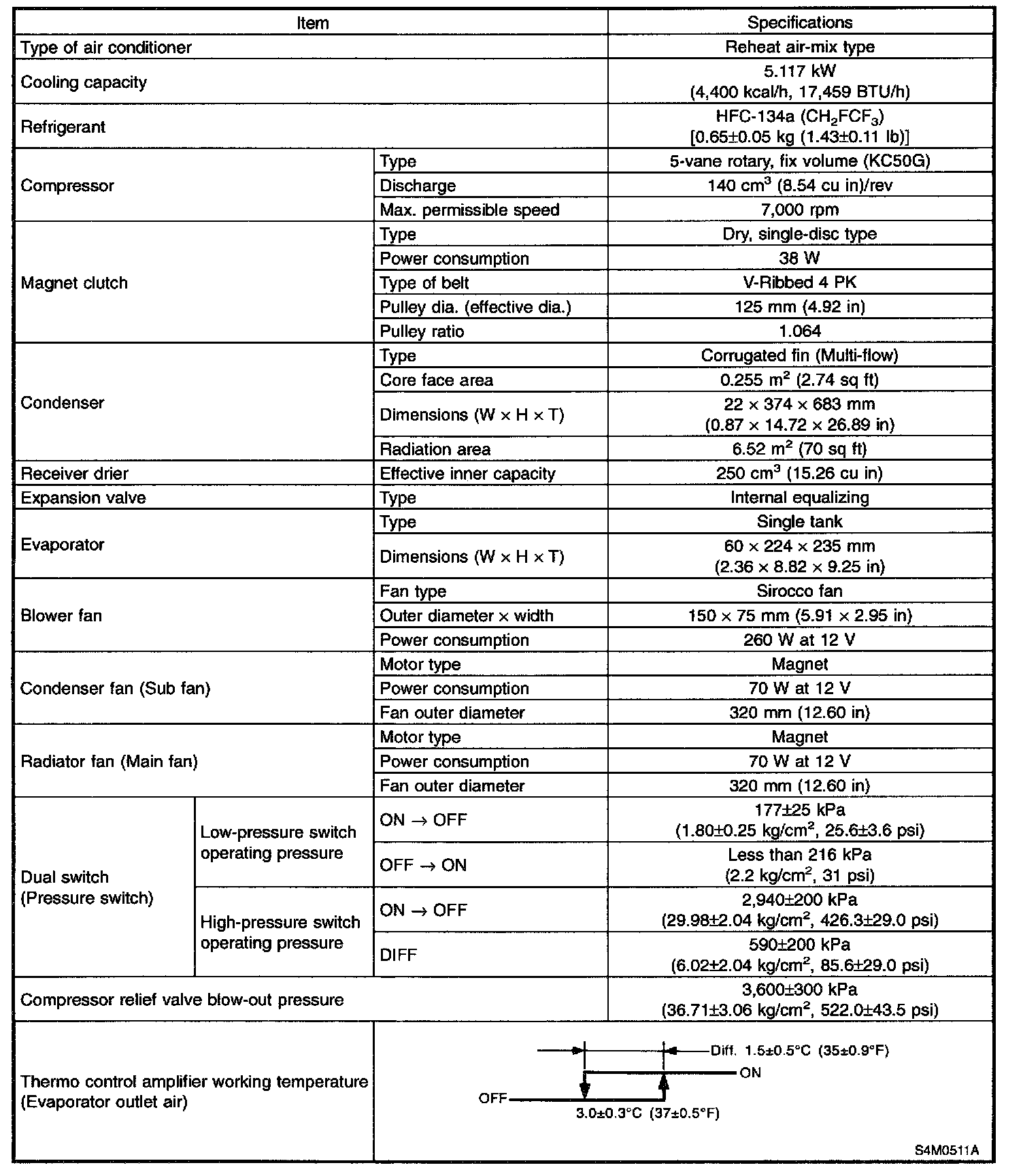 A/C System Specifications: