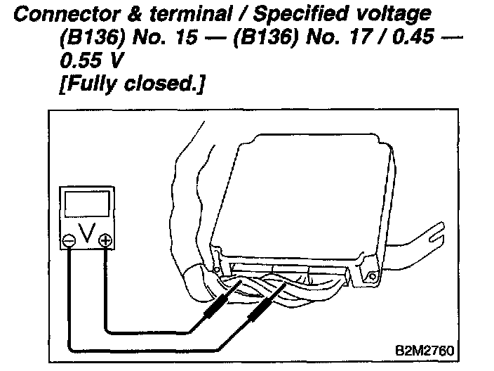 3. Adjust throttle position sensor to the proper position to allow the voltage signal to ECM to be in specification.