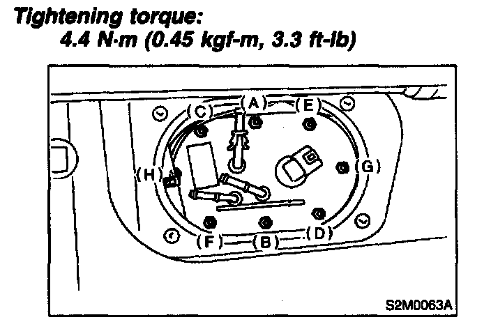 7. Remove nuts which install fuel pump assembly onto fuel tank.
