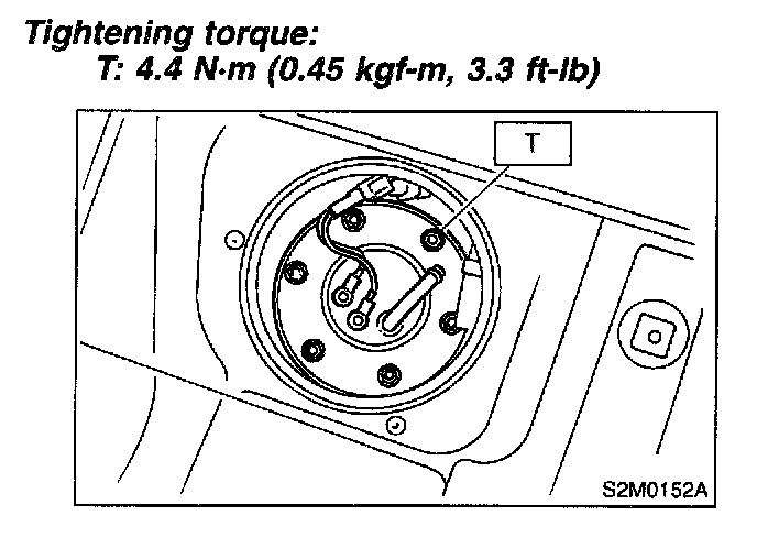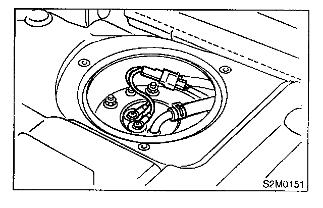 5. Remove bolts which install fuel sub level sensor on fuel tank.