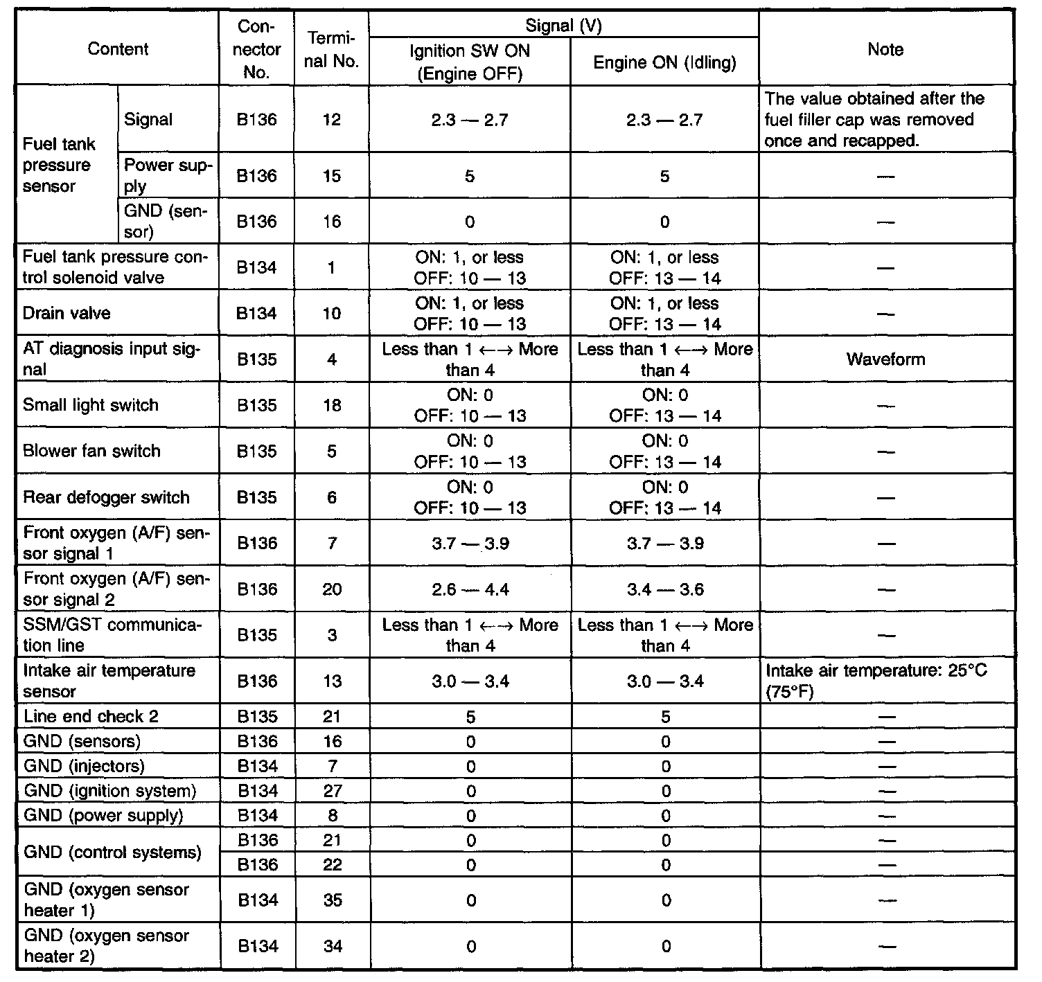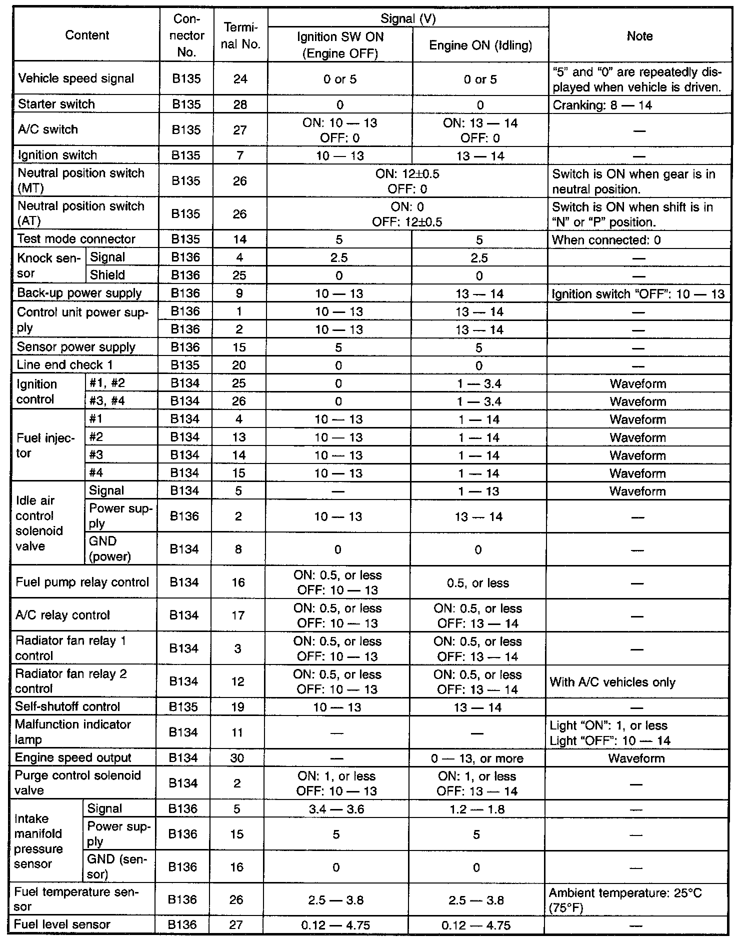 Pinout Values and Diagnostic Parameters