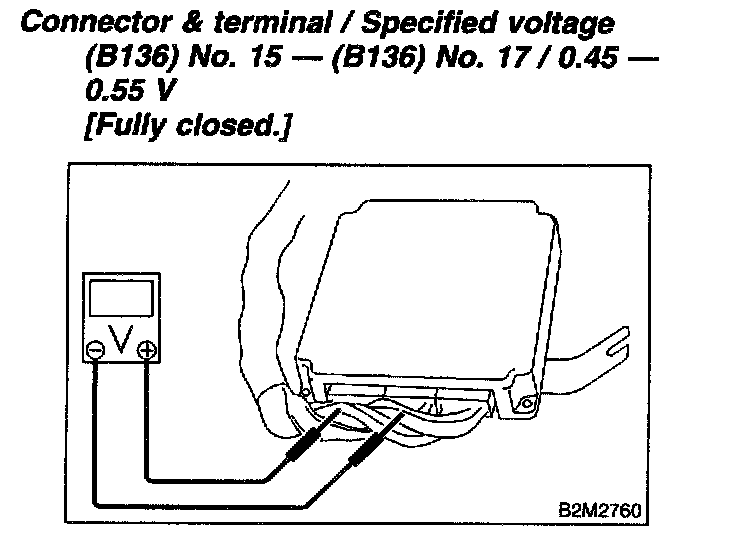 3. Adjust throttle position sensor to the proper position to allow the voltage signal to ECM to be in specification.