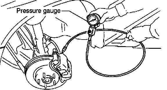 3. Connect two pressure gauges to the FL and FR caliper bodies.