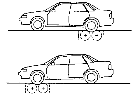 3. Set the front wheels or rear wheels on the brake tester and set the select lever's position at "neutral".