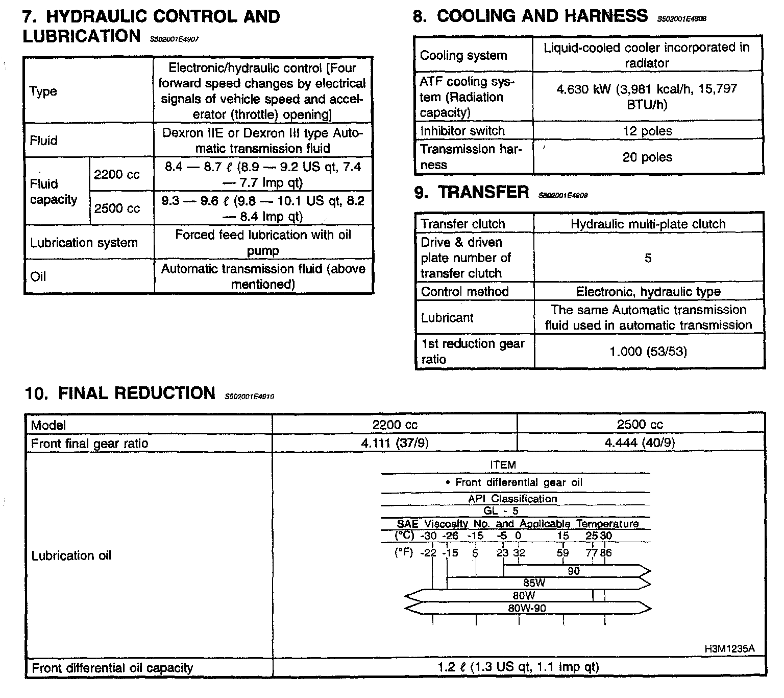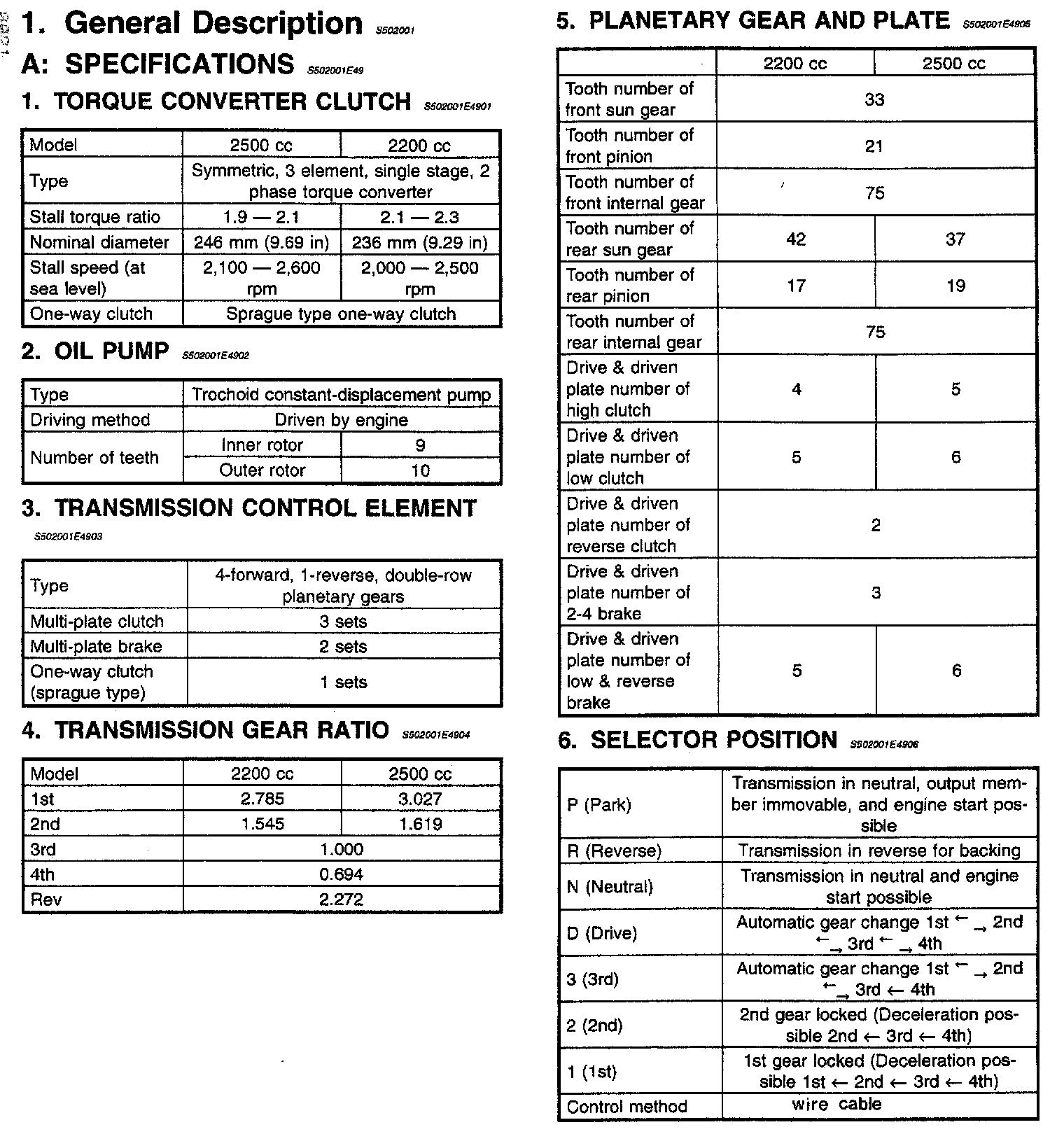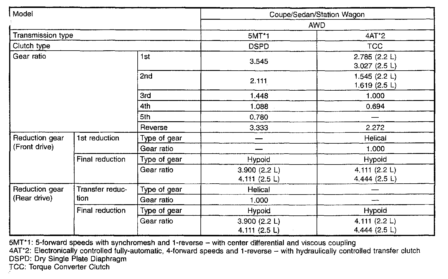 5-spd M/T/4-spd A/T, Transmission Service Data: