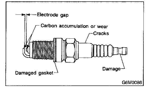 INSPECTIONCheck electrodes and inner and outer porcelain of plugs, noting the type of deposits and the degree of electrode erosion.