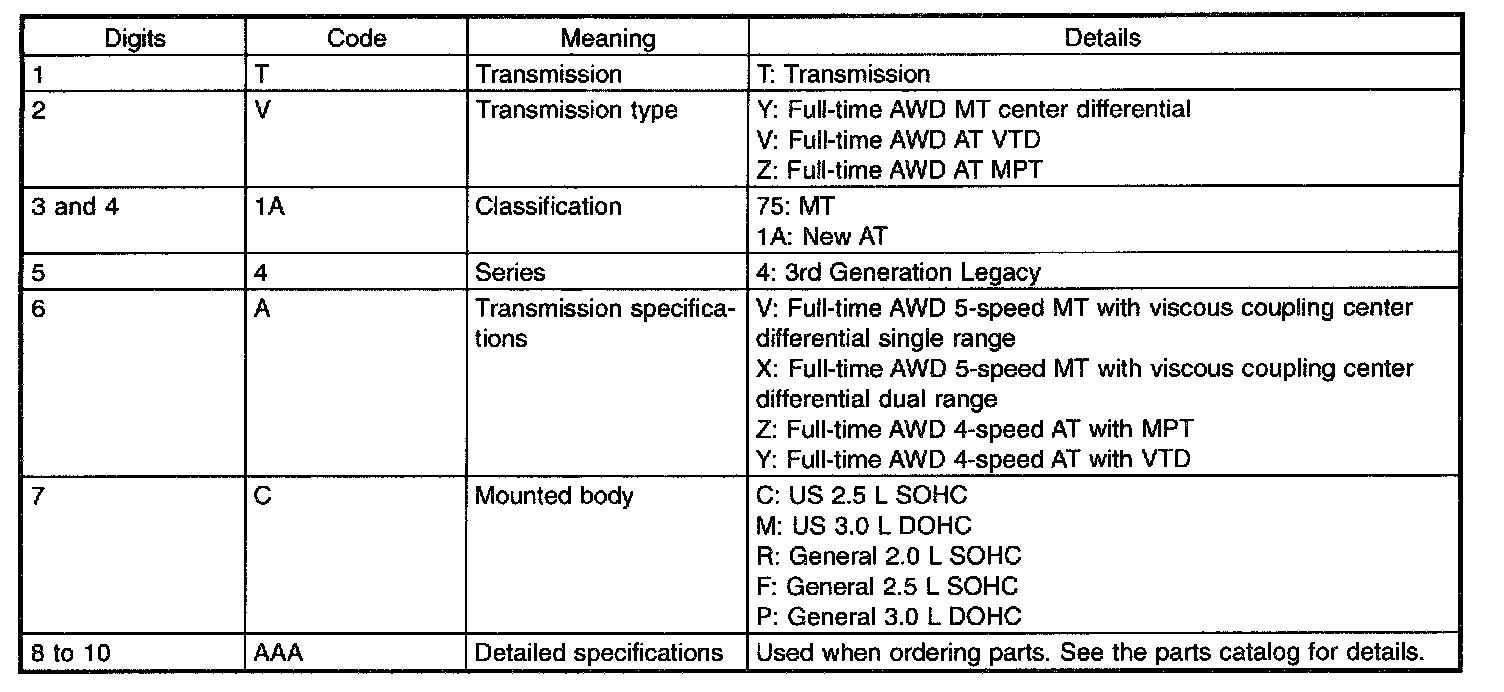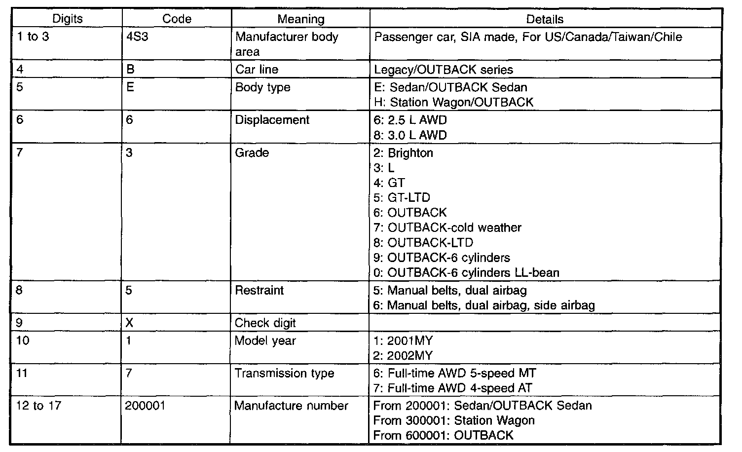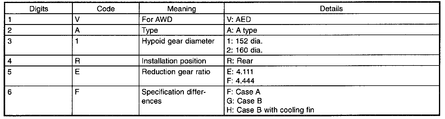 The model number plate indicates: the applied model, the option code, the trim code, the engine type, the transmission type, and the exterior color code. This information is helpful when placing orders for parts.
