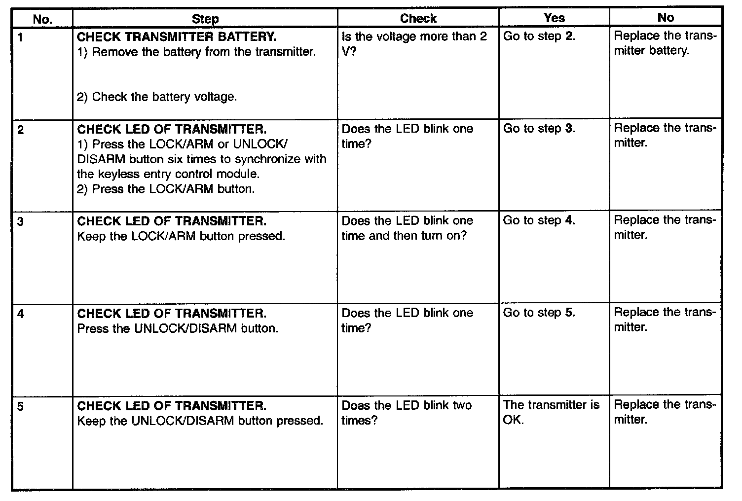 Check Transmitter Battery And Function:
