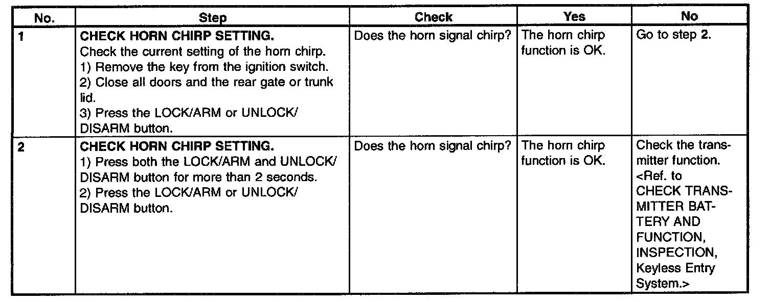 Check Horn Chirp Setting: