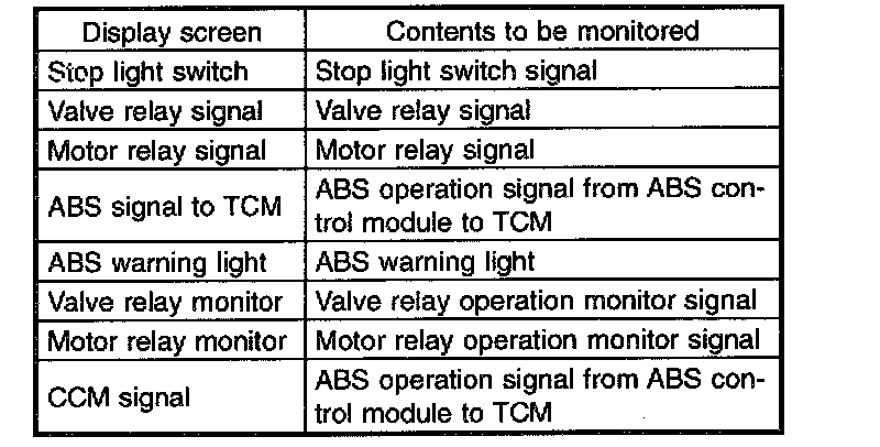 - If a particular trouble code is not properly stored in memory (due to a drop in ABSCM&H/U power supply, etc.) when a problem occurs, the trouble code, followed by a question mark "?", appears on the select monitor display. This shows it may be an unreliable reading.
