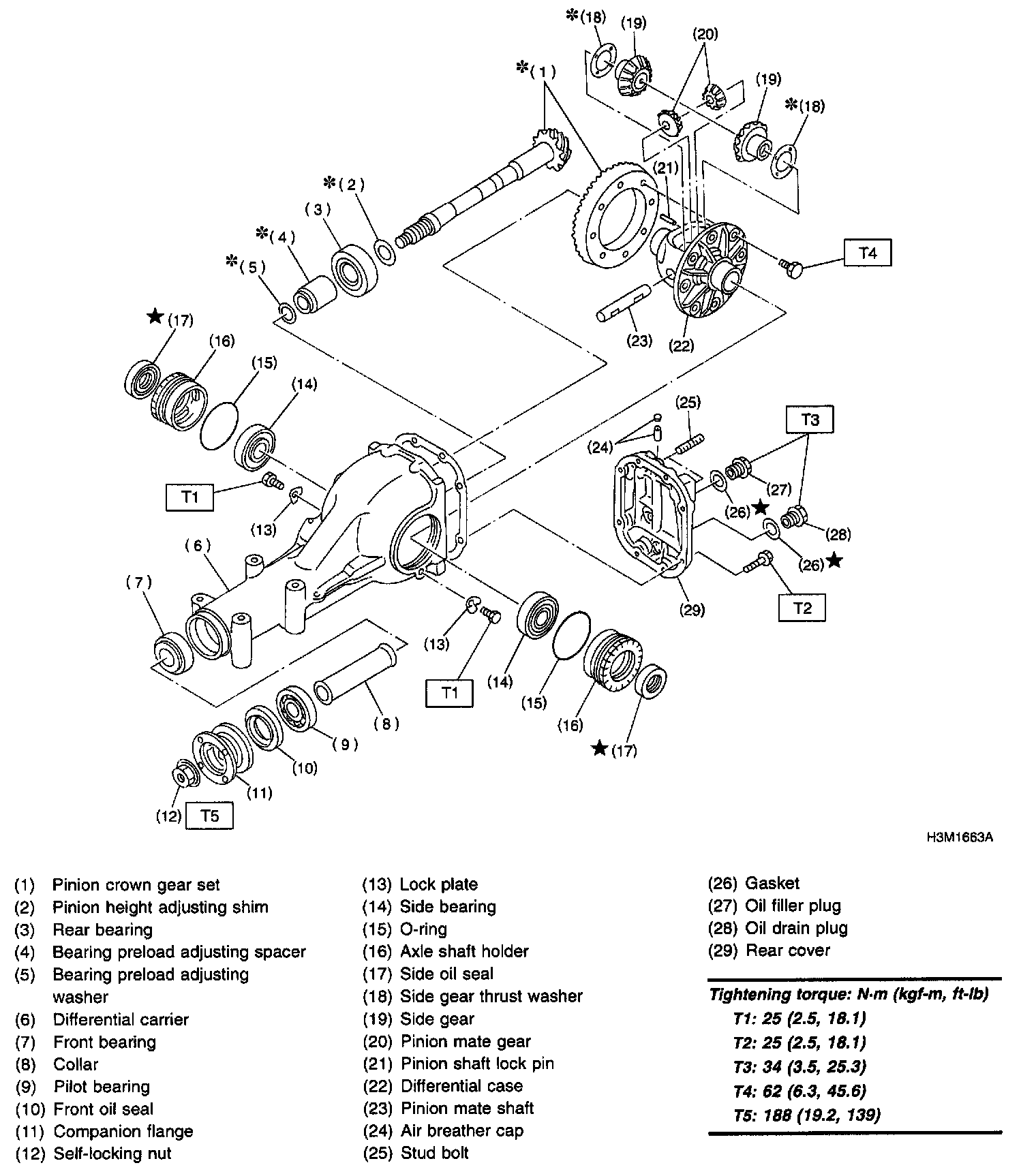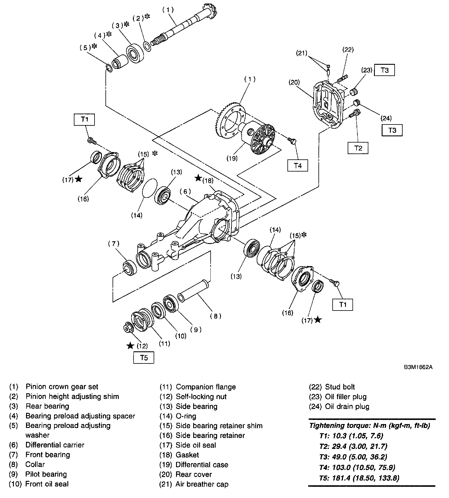 1. REAR DIFFERENTIAL FOR T-TYPE WITHOUT LSD