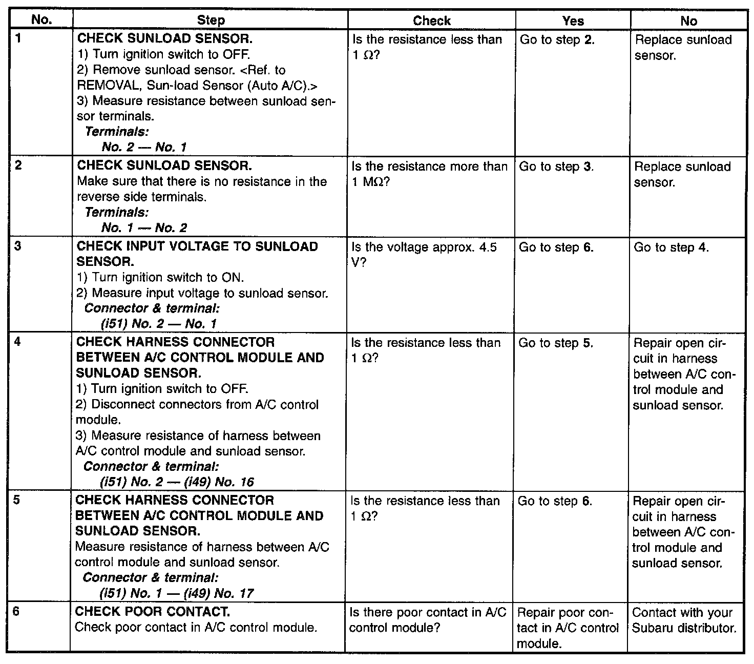 Sun-Load Sensor (Auto A/C)TROUBLE SYMPTOM: