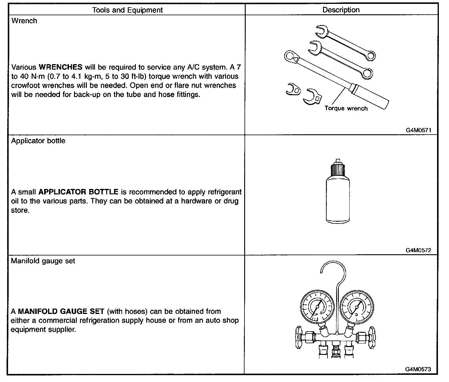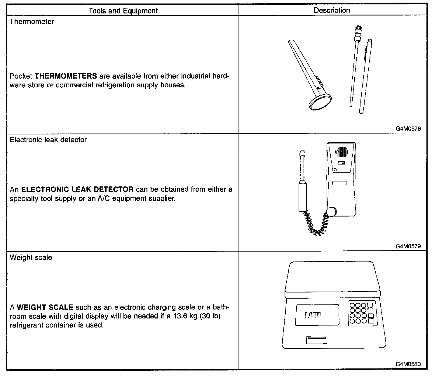 In order to help prevent mixing HFC-134a and CFC-12 parts and liquid, the tool and screw type and the type of service valves used are different. The gas leak detectors for the HFC-134a and CFC-12 systems must also not be interchanged.