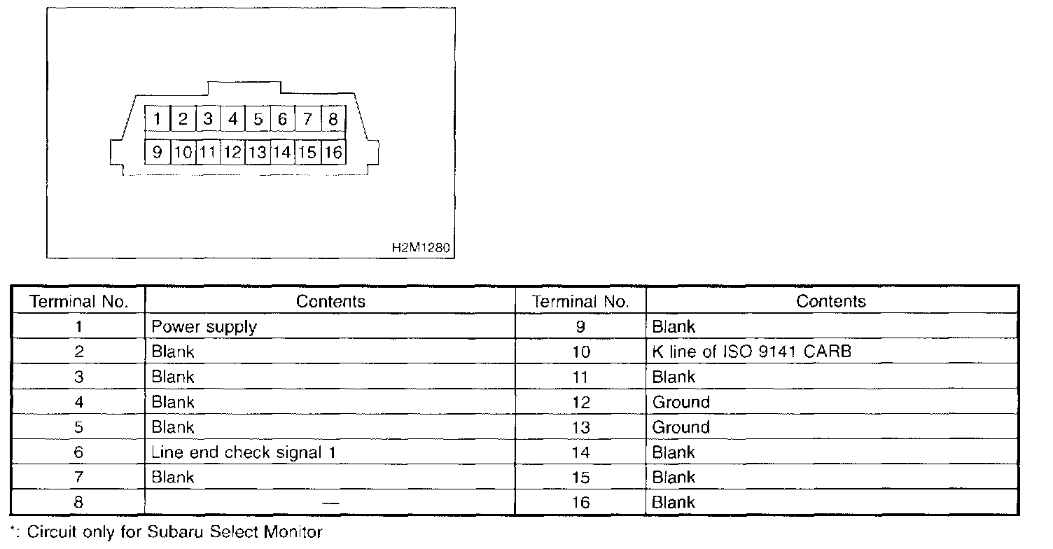NOTE:1. This connector is used both for OBD-II general scan tools and the Subaru Select Monitor.