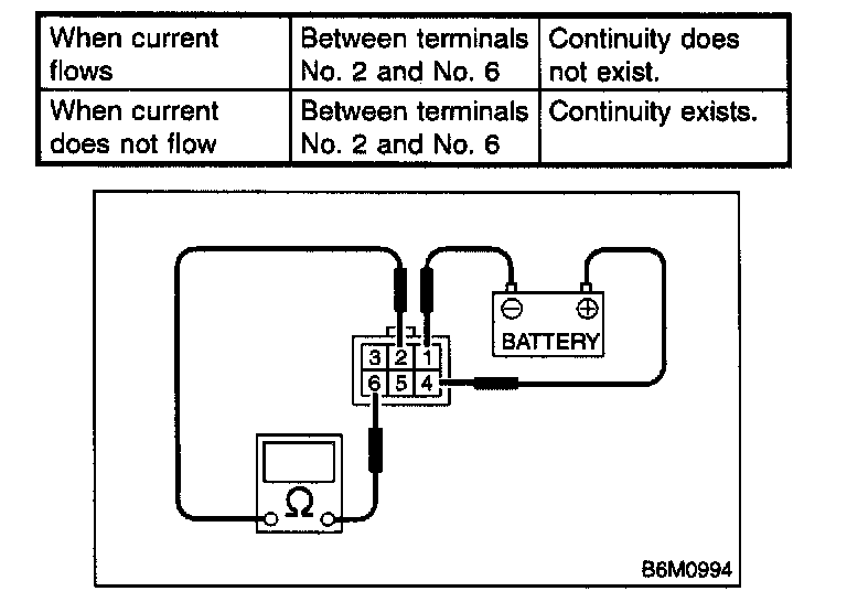 Interrupt RelayCheck continuity between the security horn relay terminals (indicated in the table) when connecting the battery to terminals No.1 and No.4.