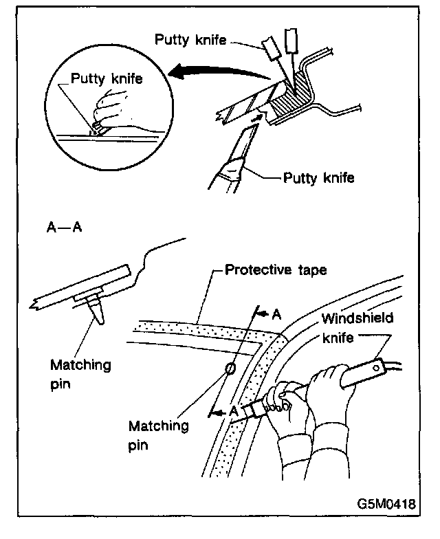 - Cutting of adhesive layer shall be started with wider gap between windshield glass and body.