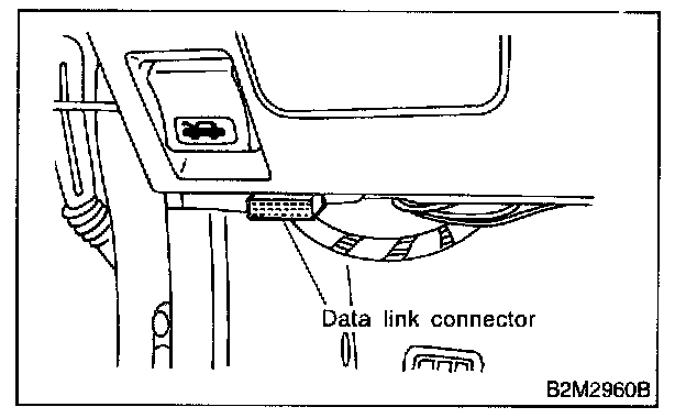 2. Open the cover and connect the OBD-II general scan tool to the data link connector located in the lower portion of the instrument panel (on the driver's side).