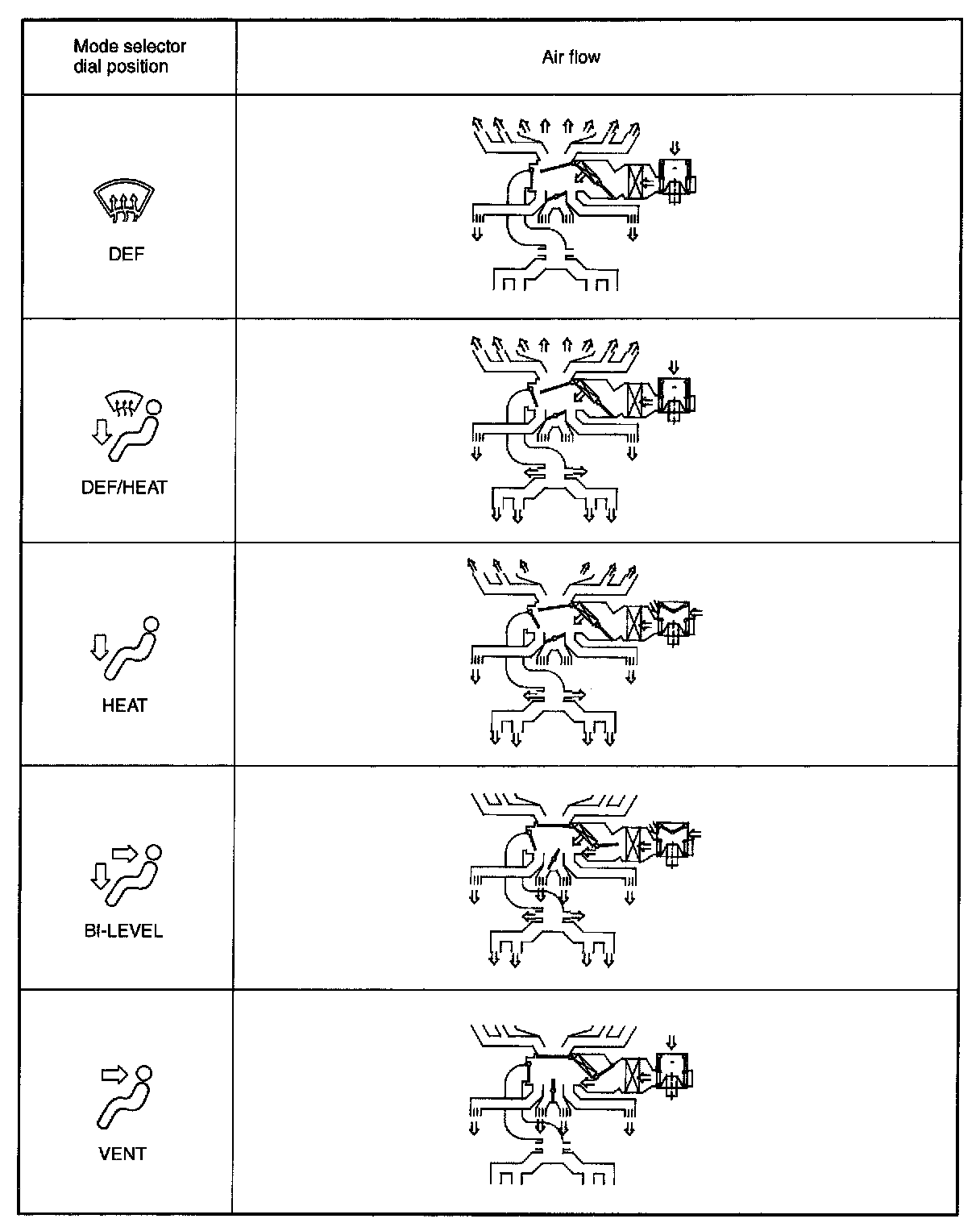 Mode Selector Switch and Air Flow: