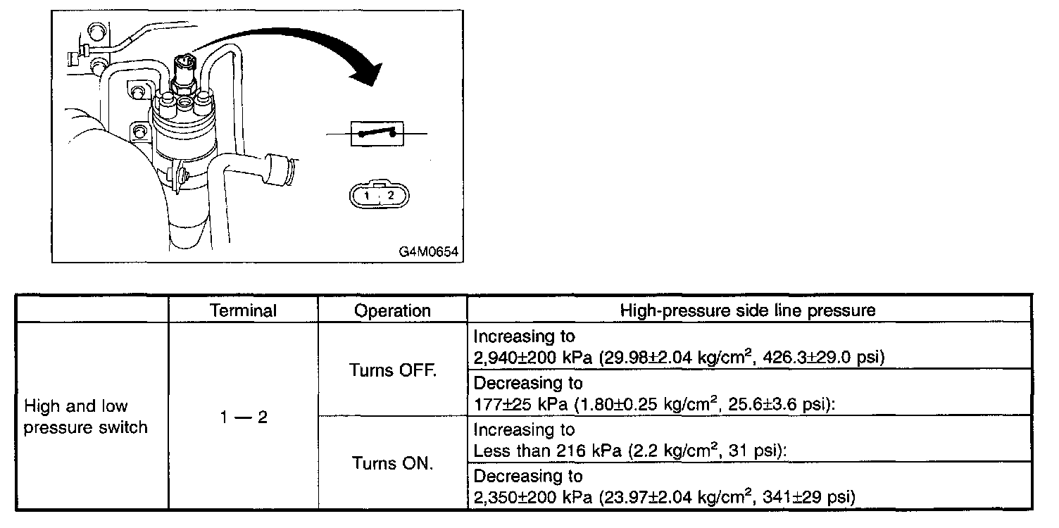 Refrigerant Pressure Sensor / Switch: Testing and Inspection