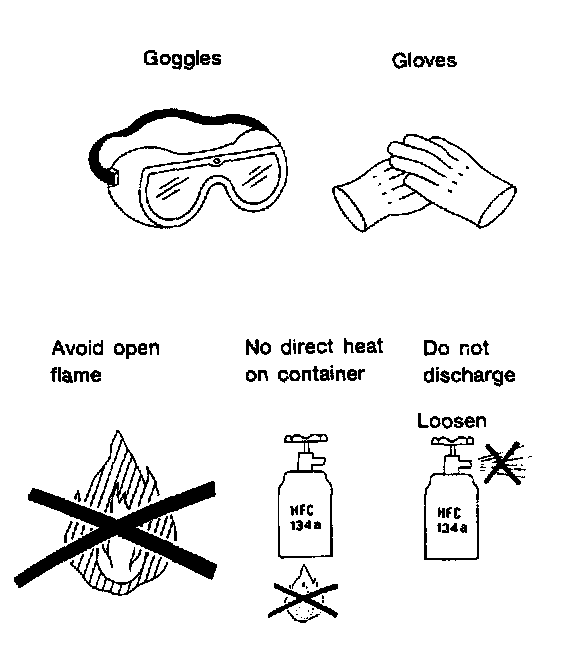 The refrigerant boils at approx. -30 °C (-22 °F). When handling it, be sure to wear safety goggles and protective gloves. Direct contact of the refrigerant with skin may cause frostbite.
