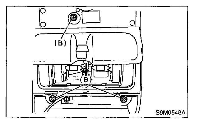 4. Remove spotlight mounting screw (B).