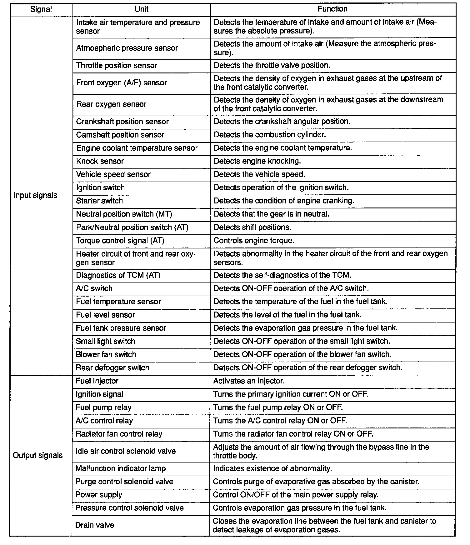 Input And Output Signals: